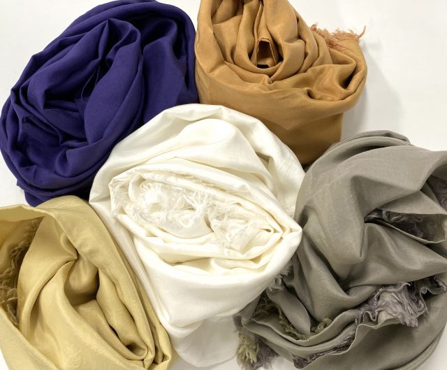 21aw collectionのボタニカルダイは、今季のテーマであるMagnolia(モクレンン)を用いた二色に加え、Fig(イチジク)、Logwood(ログウッド)を使った五色展開です。