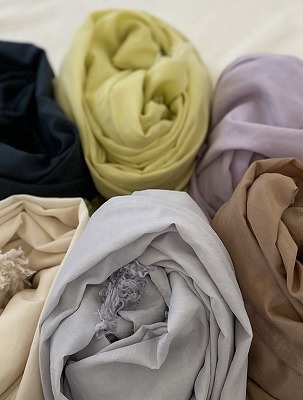 昔から続いている草木染めで用いる媒染剤を使ったくすみのある色と、それを使わず染める新しい植物染めの技術(=ボタニカルダイ)による透明感のある色を素材や形や季節に合わせて使い分けています。