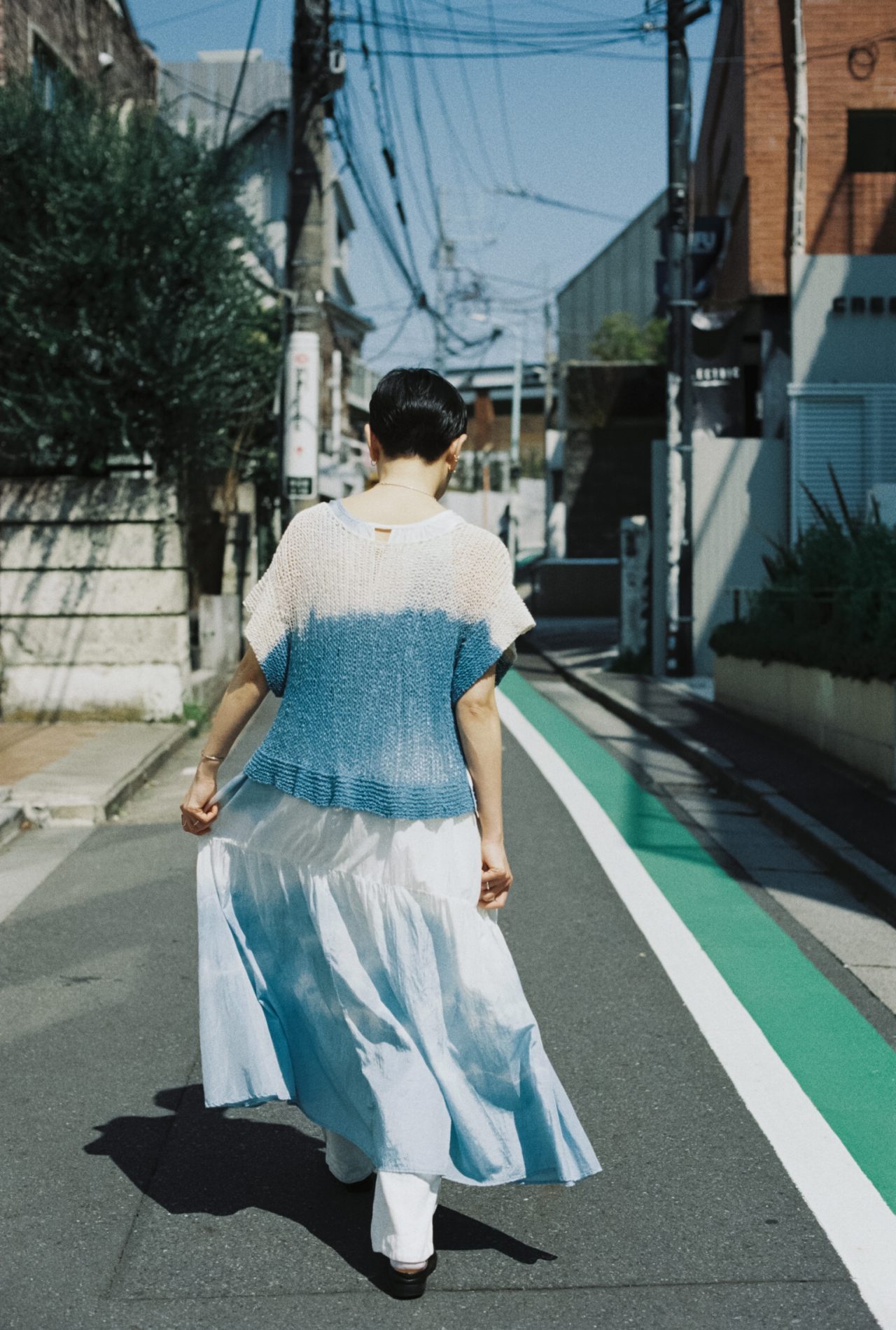 enricaの洋服を知ったのは「かぐれ」に入ってから。上司が教えてくれました。細部までこだわってつくっていることにびっくりして。私自身も天然素材や草木染めが好きだったので、共感する部分も多くて。私はメンズっぽい洋服が好みで、どっちかというと女性らしいenricaの洋服は好みの真逆なんですよね。でも惹かれてしまう。私としては憧れというか、いつかこういう服を着こなせたらいいなって思っていました。バイヤーになってからは、enricaの洋服を手にとると、いろんなお客さんの顔が浮かぶんです。誰かを思い浮かべることができる洋服って、いいですよね。やさしさが洋服から滲み出ている感じがずっと好きですね。