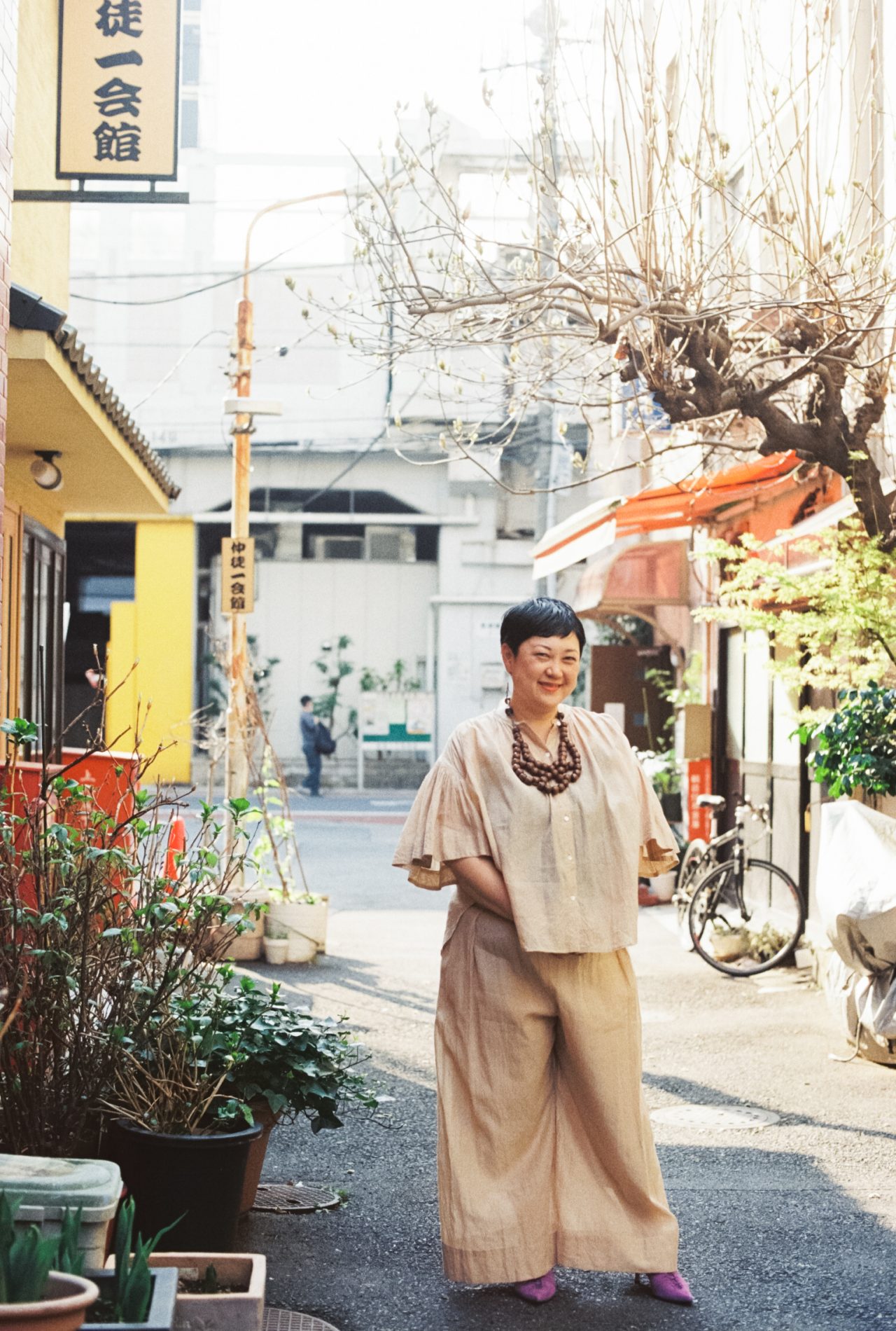 父親の仕事の関係でちょっとだけ東京を離れたこともあったんですけど、ほぼほぼ中野で育ちました。大学は福祉か服飾で迷って、で、どっちも受けて、福祉の方だけ落ちちゃったので服飾の短大に進学しました。ファッションに興味があったというより、自分がいいなっていう洋服をつくりたかったんです。私、子どもの頃から体が大きかったので、なかなかジャストサイズの洋服がなくて。鏡の前に立ったとき、いつもうーんって。でも大きなサイズだと、今度はデザインが好みじゃなかったりして、やっぱりうーんって。だから必要に迫られて、中学生の頃からリメイクしてましたね。鏡の前に立って、私がいいじゃんって思える洋服をつくりたいって思ったことがきっかけかな。