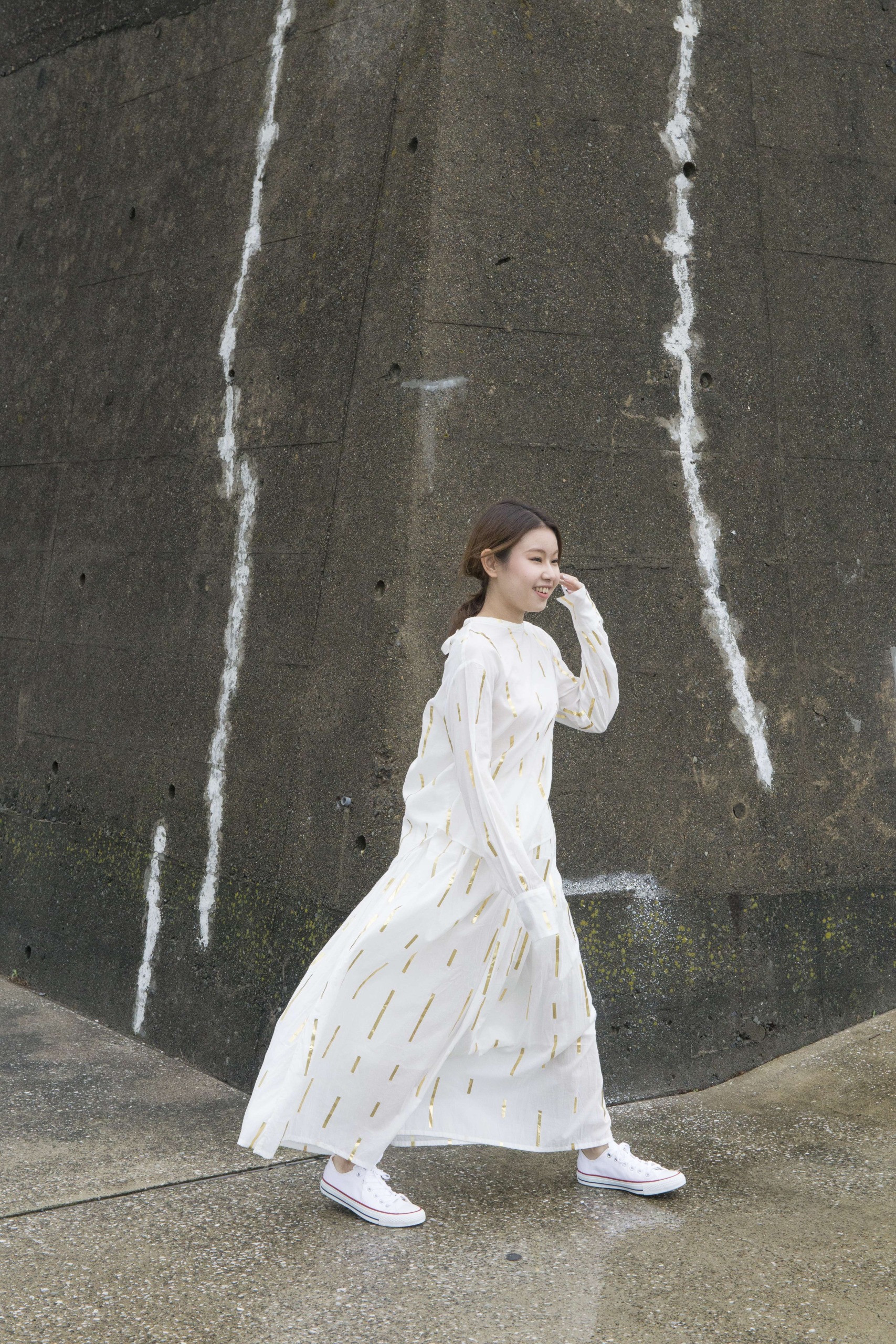 「写真を撮られることって、そもそも緊張するじゃないですか。私が感じた恥ずかしさは、モデルだからというよりは、写真を撮られることの方にあったのかなと思います。赤の他人だったら、それなりに戸惑っていたと思うんです。でも、目の前でカメラを構えているのが父親だということで、任せたというか、頼みますよというのかな、私はいいから服が綺麗に写ったらいいなとか、そんなことを考えたりしてました」
