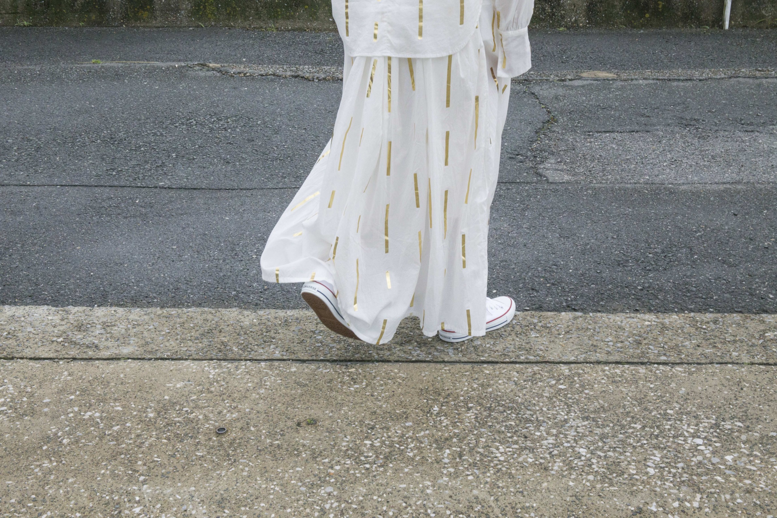 「モデルをやったのは今日が初めてだったんですけど、やっぱり、恥ずかしかったですね。でも、よく考えてみると、それほどでもなかったかも、という思いもあって、普段は着ない服を着て、歩いたり止まったりしながら、へぇ、撮影ってこんな感じなんだって、客観的な自分もいて。途中、これでいいのかなと思ったりもしたんですけど、父親だし、まぁ大丈夫かなって」