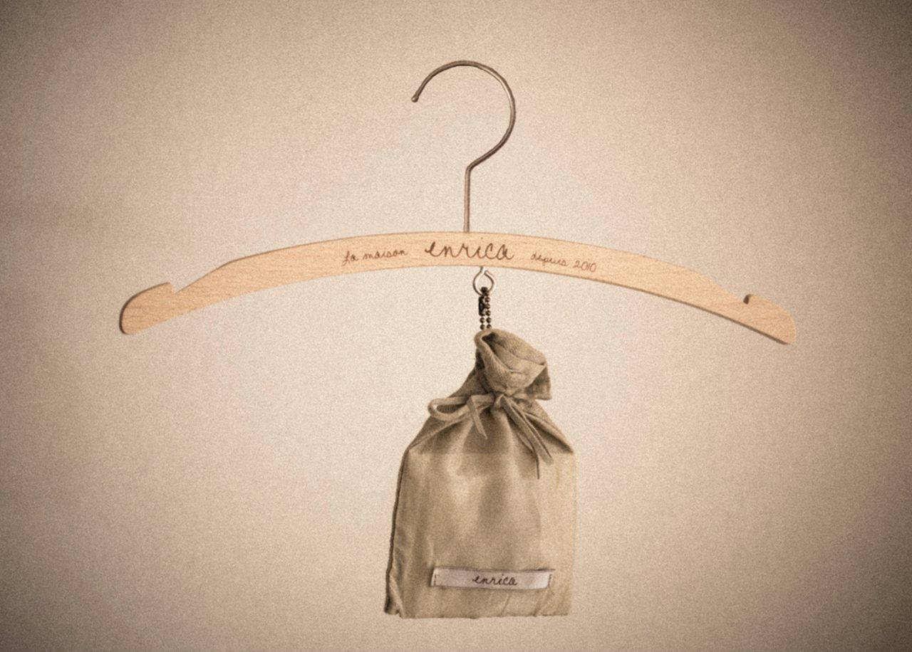 それは、enricaの服に自分だけのオリジナルなサインを入れ、世界に一枚しかない服作りに参加して欲しいとの思いからでした。